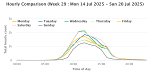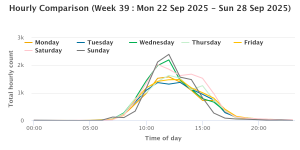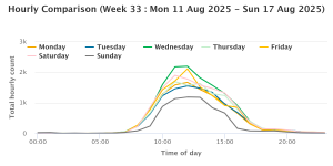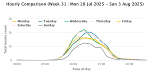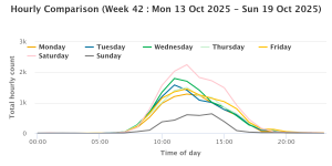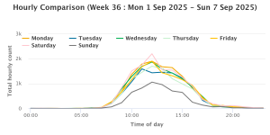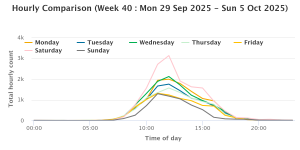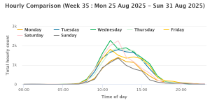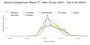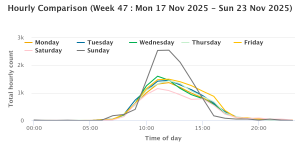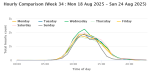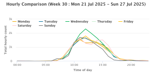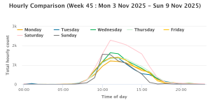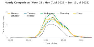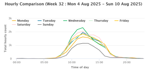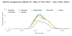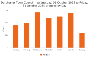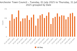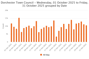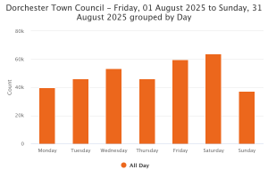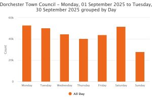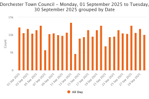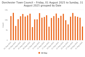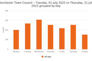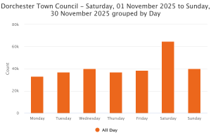 Dorchester Town Council installed a footfall counter on South Street outside Goulds Fashion Store in August 2024. This data is published for businesses in Dorchester and businesses interested in opening in Dorchester to use.