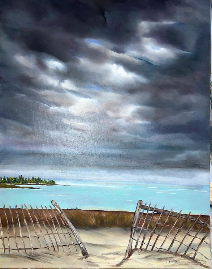 Kevin is a retired teacher who has recently moved down to Dorset from London . He works primarily in oils and is inspired by nature and portraiture. This series of paintings focus on my love of tempestuous skies.