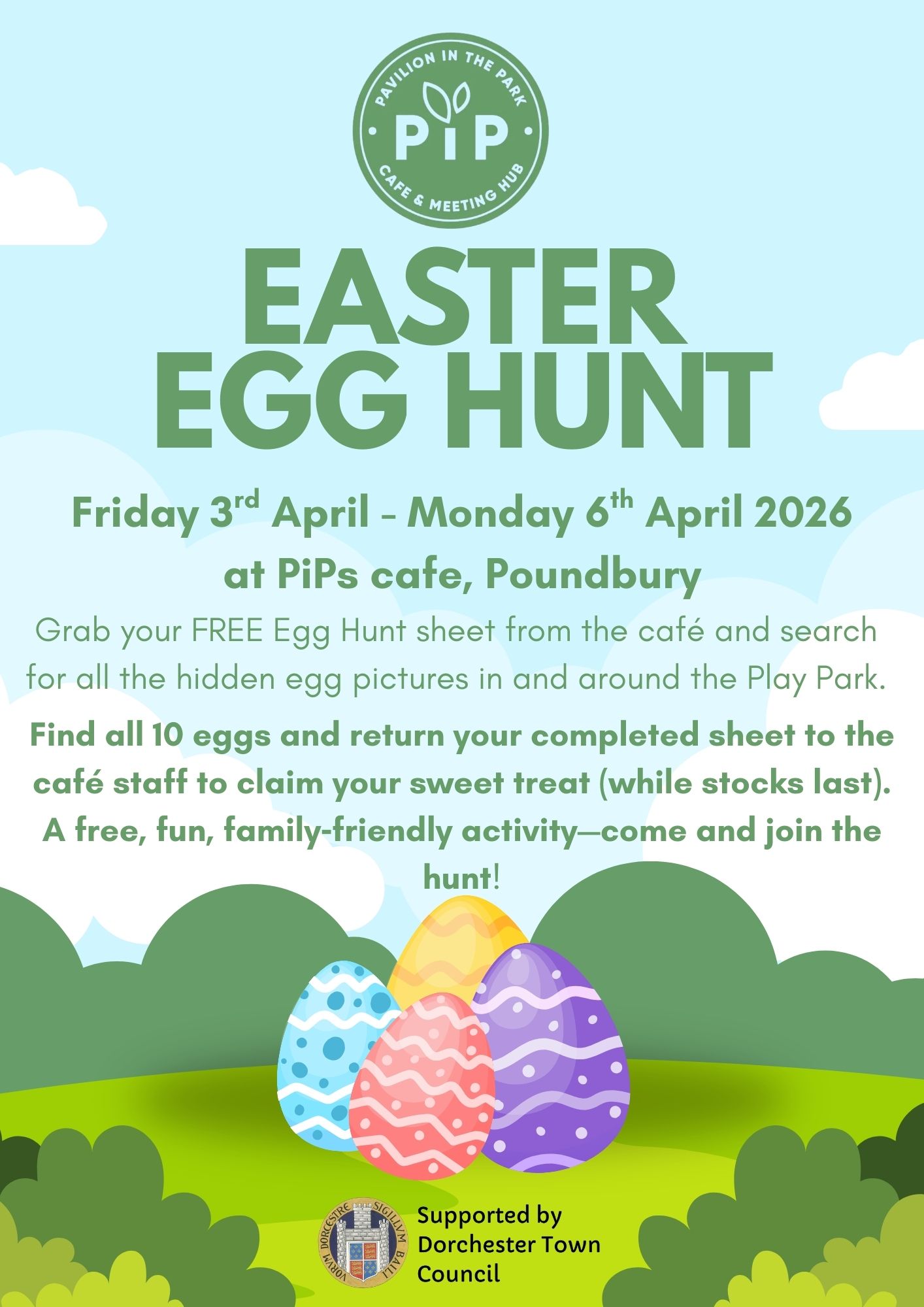 Hop over to PiPs Café in Poundbury and take part in our Easter Egg Hunt from Friday 3rd April until Monday 6th April! Grab a free search sheet from the cafe, explore the Play Park to find all 10 laminated pictures and return your sheet to the café and claim a sweet treat (whilst stocks last!).