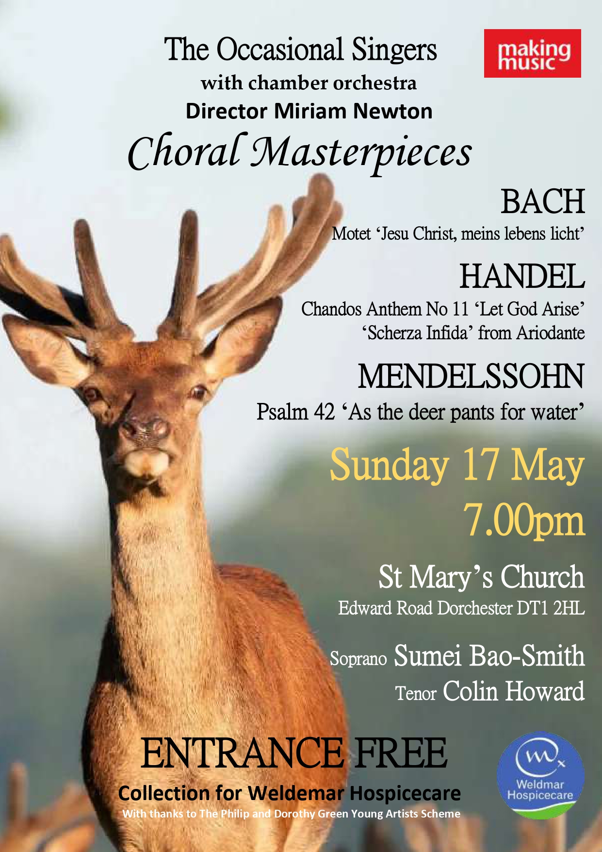 Entrance is FREE. There will be a retiring collection for Weldmar Hospicecare.