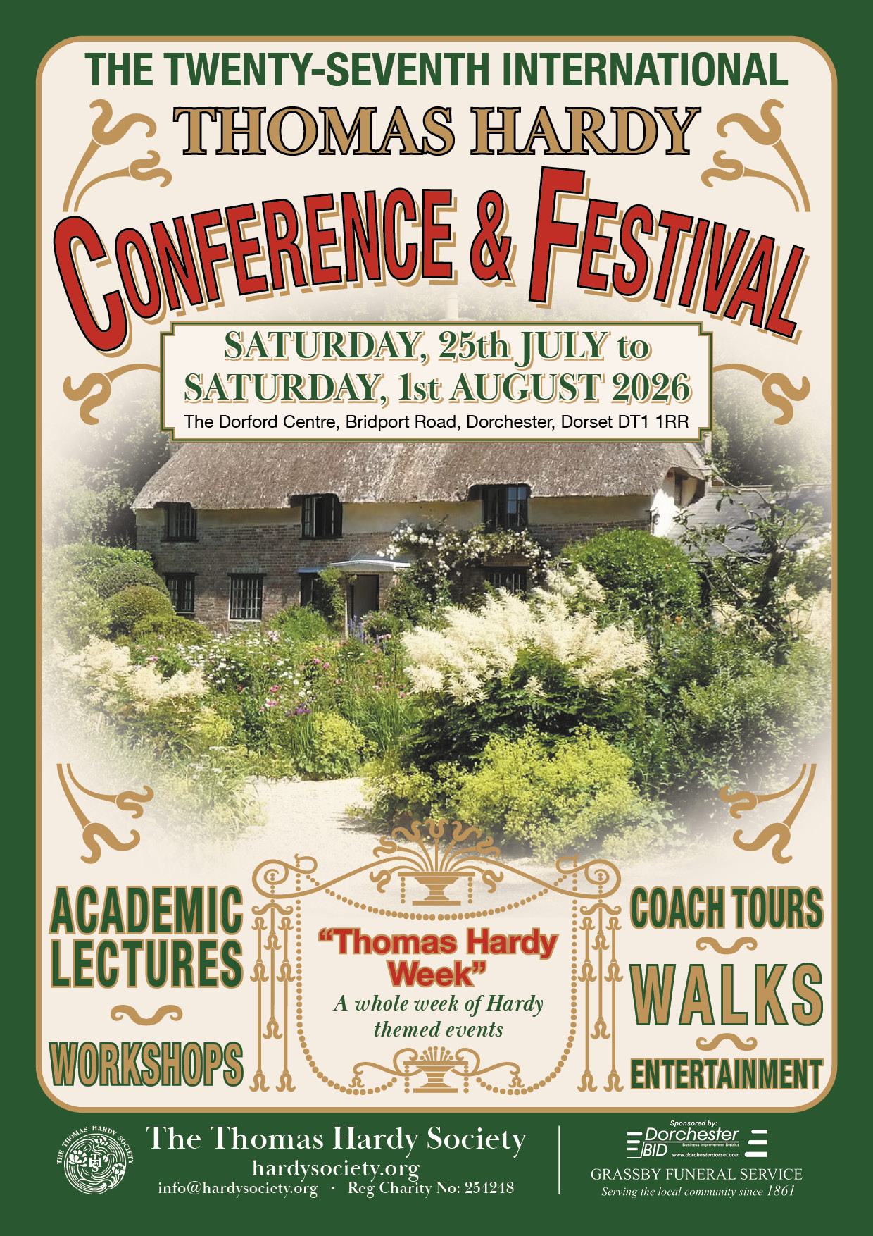 The Thomas Hardy Conference & Festival is a prestigious biennial event organized by The Thomas Hardy Society in Dorchester during the last two weeks of July.